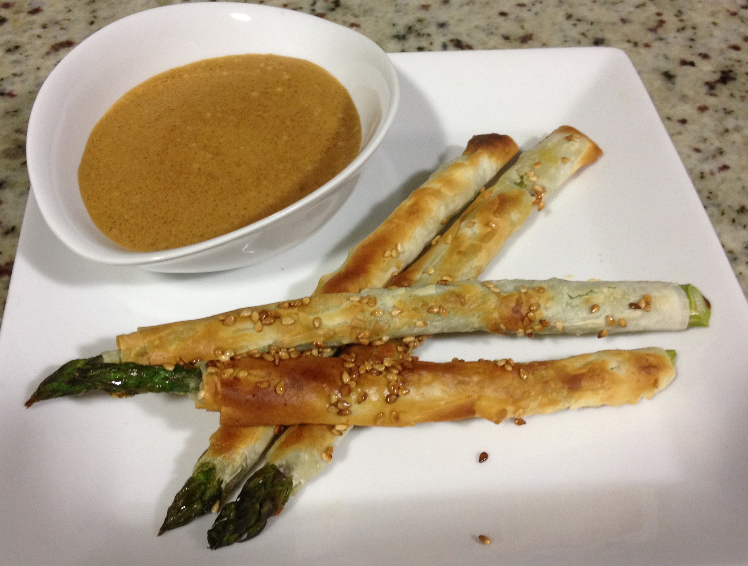 - Extienda separadamente las hojas de filo sobre papel parafinado. Unte su superficie con mantequilla clarificada. Enrolle cada espárrago en un rectángulo y pintelo con mantequilla clarificada.