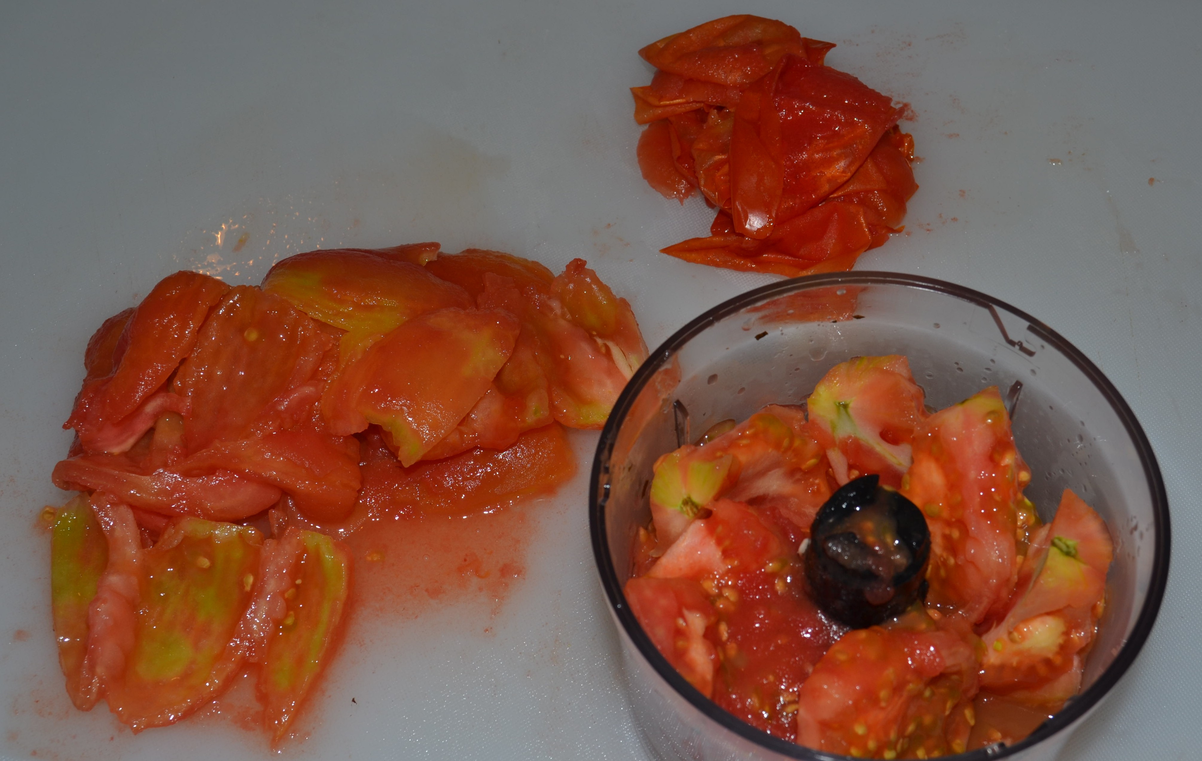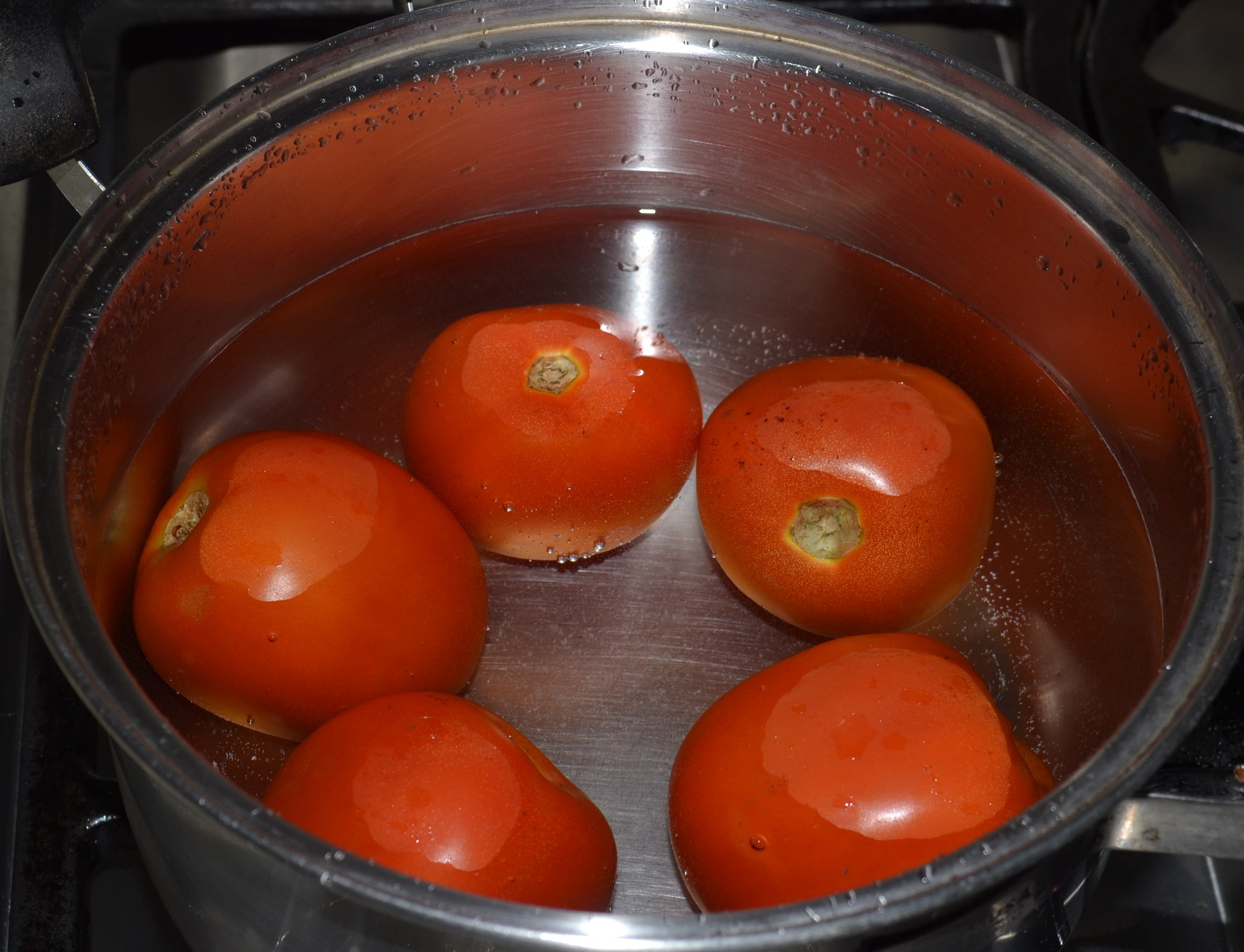 - Pelar los tomates: Para esto la forma que usamos consiste en ponerlos a hervir en agua y cuando las cascaras se rompen los pasamos por agua fría y se pelan sin ningún esfuerzo.