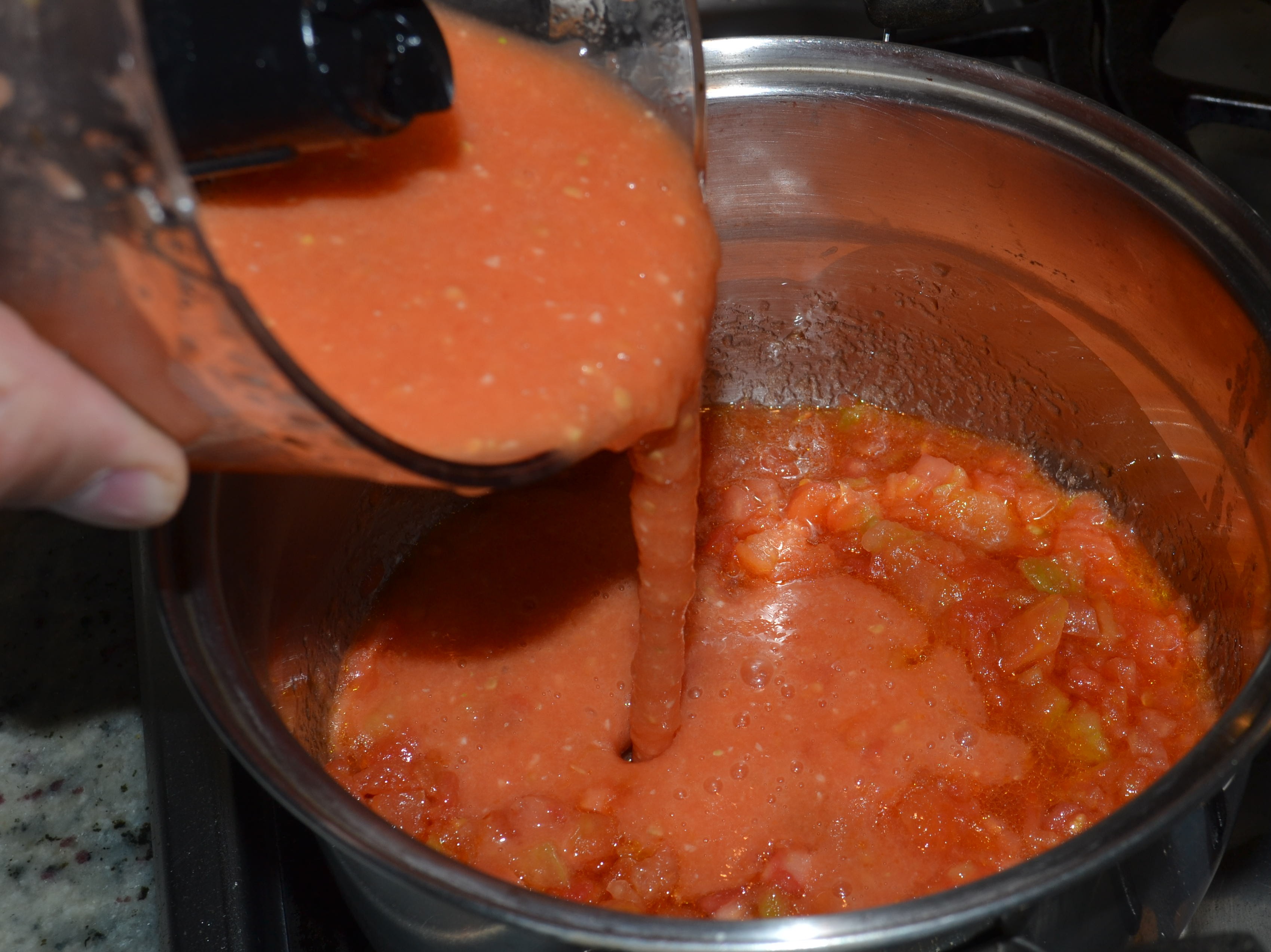 - Adicionar la pasta de tomate procesada y mantener a fuego bajo.