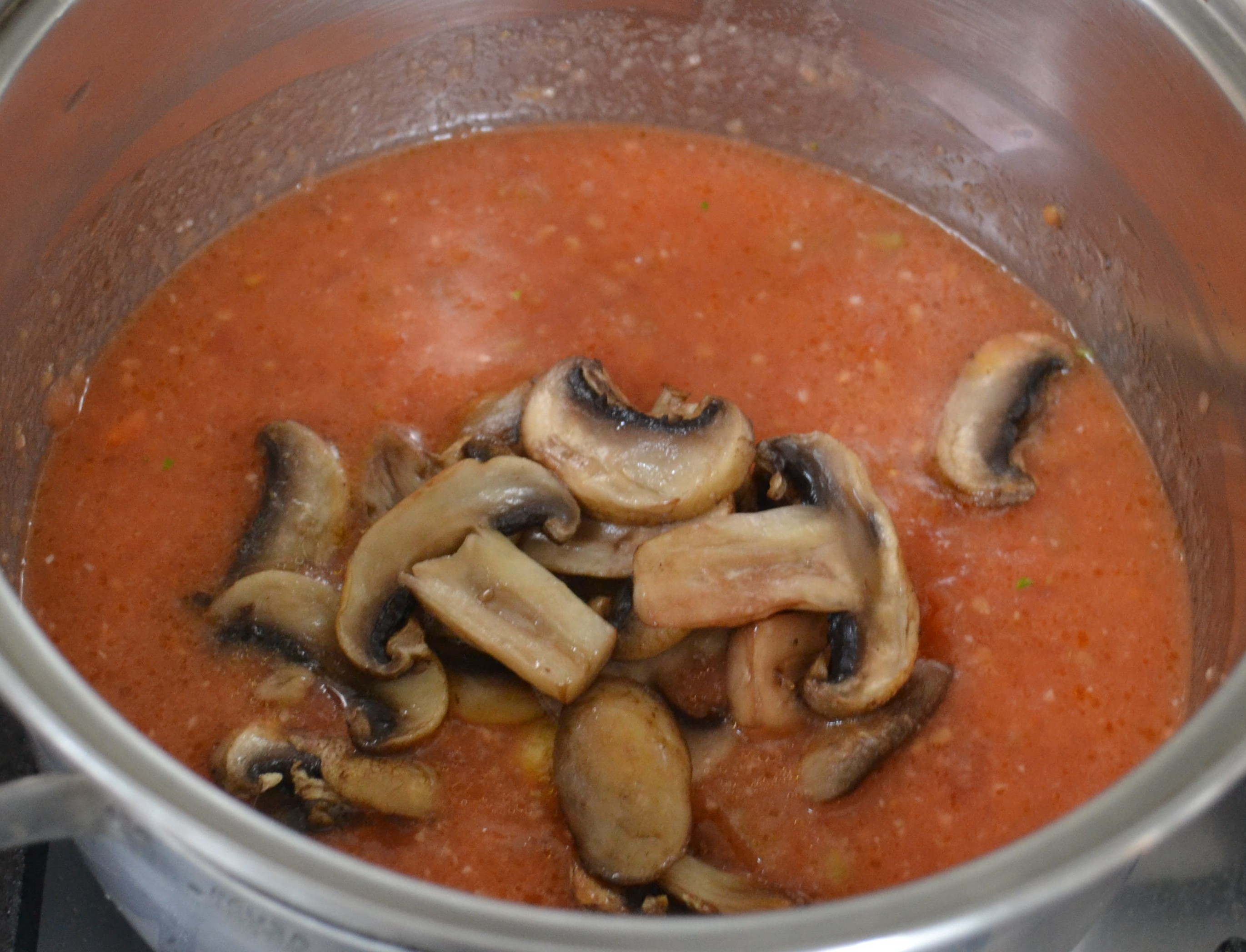- Sofreír los champiñones y adicionarlos a la salsa de tomate con el agua que sueltan.