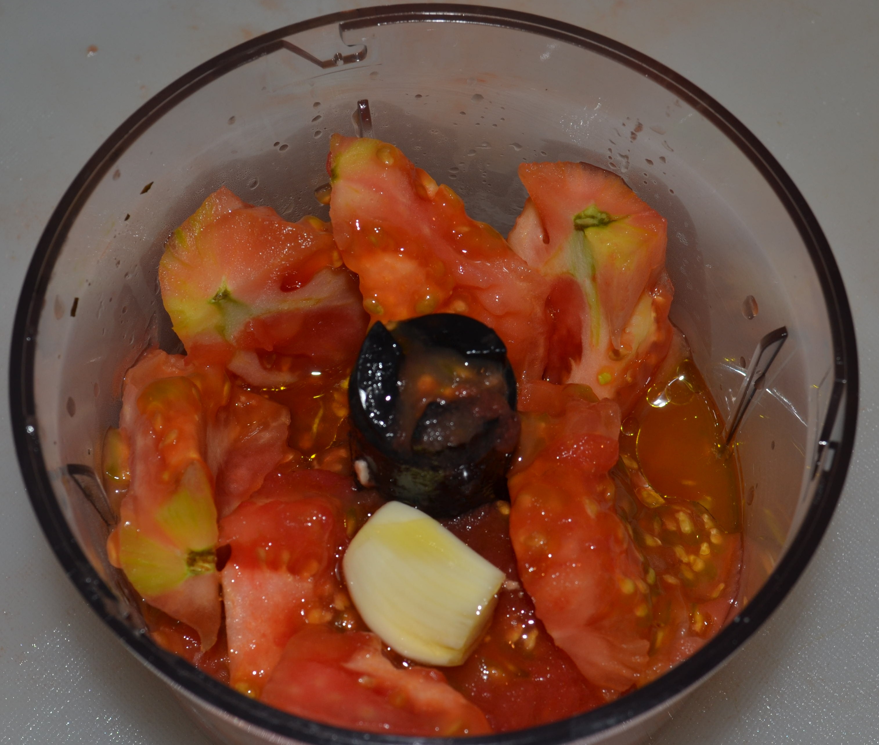 - Procesar la parte central con semillas, el ajo y una cucharada de aceite de oliva