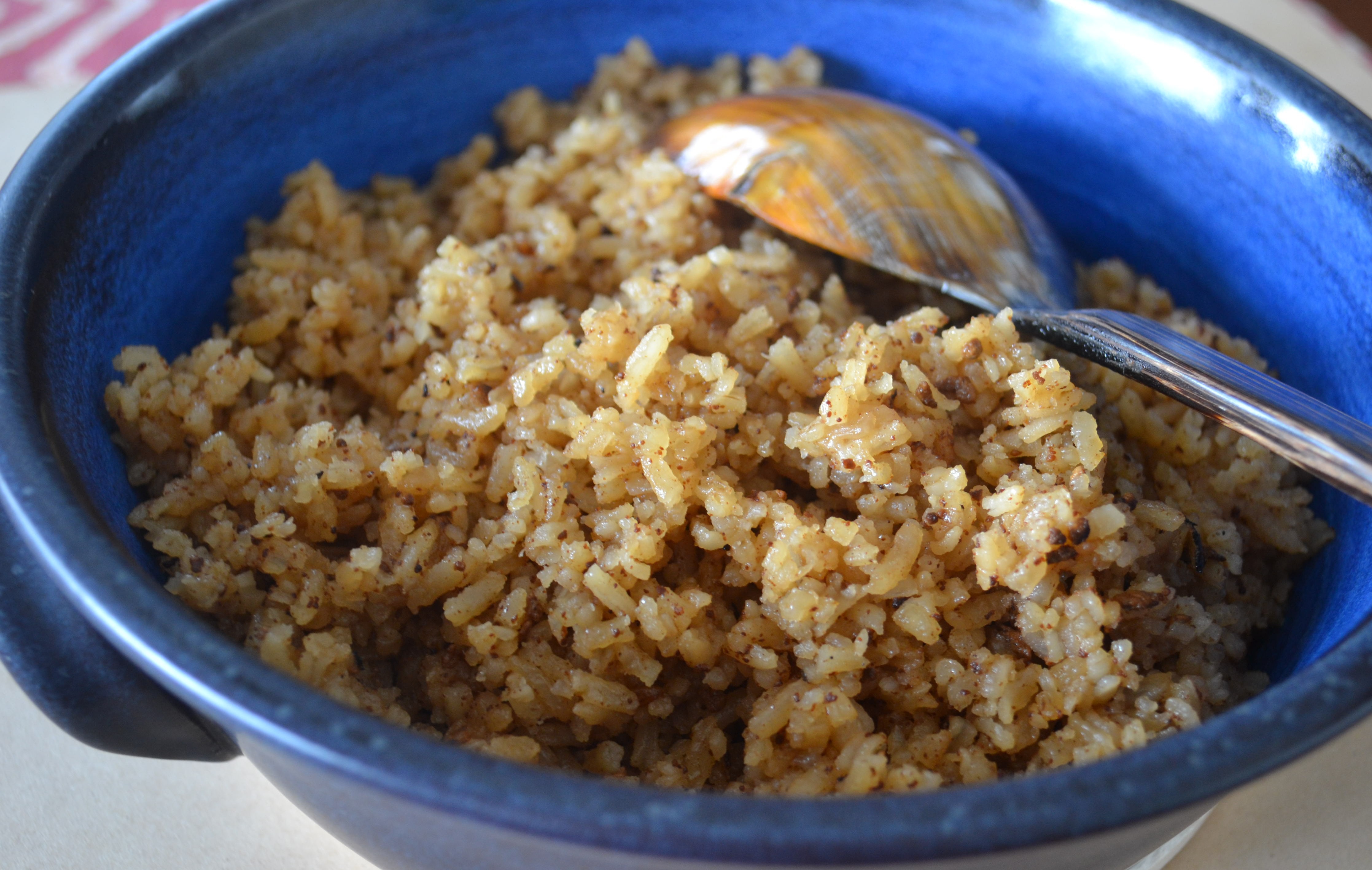 Esta receta la encontramos en el libro Á la Carte, de María Villegas, buscando el acompañamiento para la Posta Negra Cartagenera, pero la adaptamos utilizando de una vez el titoté que viene listo en frasco, haciéndola más sencilla. Si se desea se pueden agregar uvas pasas al final de la cocción dejándolas hidratar un poco. Hay que tener en cuenta que las uvas endulzan el arroz y si va a servirse con la posta, la combinación podría quedar muy dulce. Nosotros en este caso, recomendamos omitir las uvas.