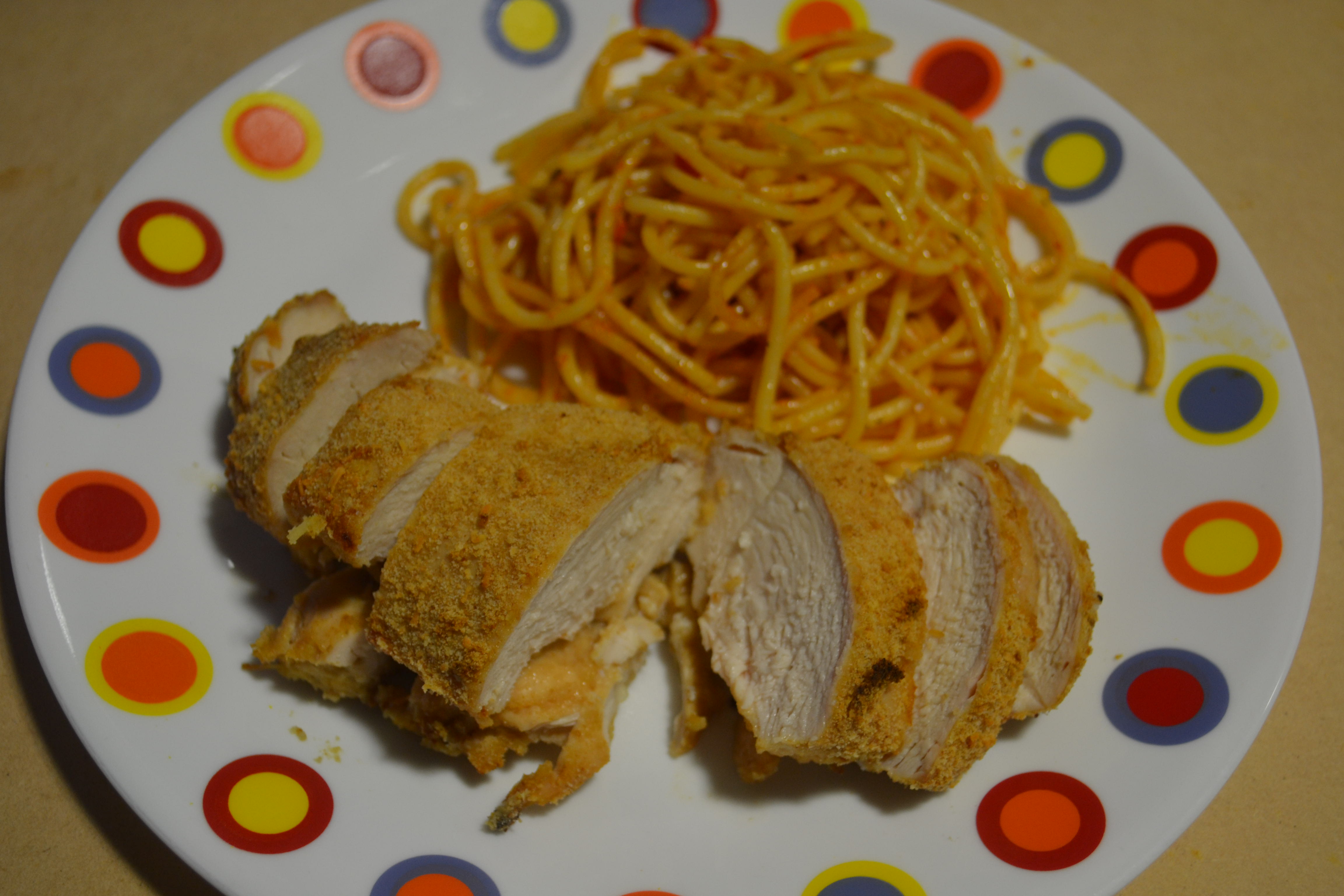 Esta, como muchas recetas, ha sido el resultado de buscar variedad en la comida de nuestros hijos. Al hacer el pollo al horno se consigue una cocción perfecta, bien cocido y jugoso y al mismo tiempo se consigue un crocante delicioso. Como acompañamiento sugerimos una pasta larga, al burro o con tomate.