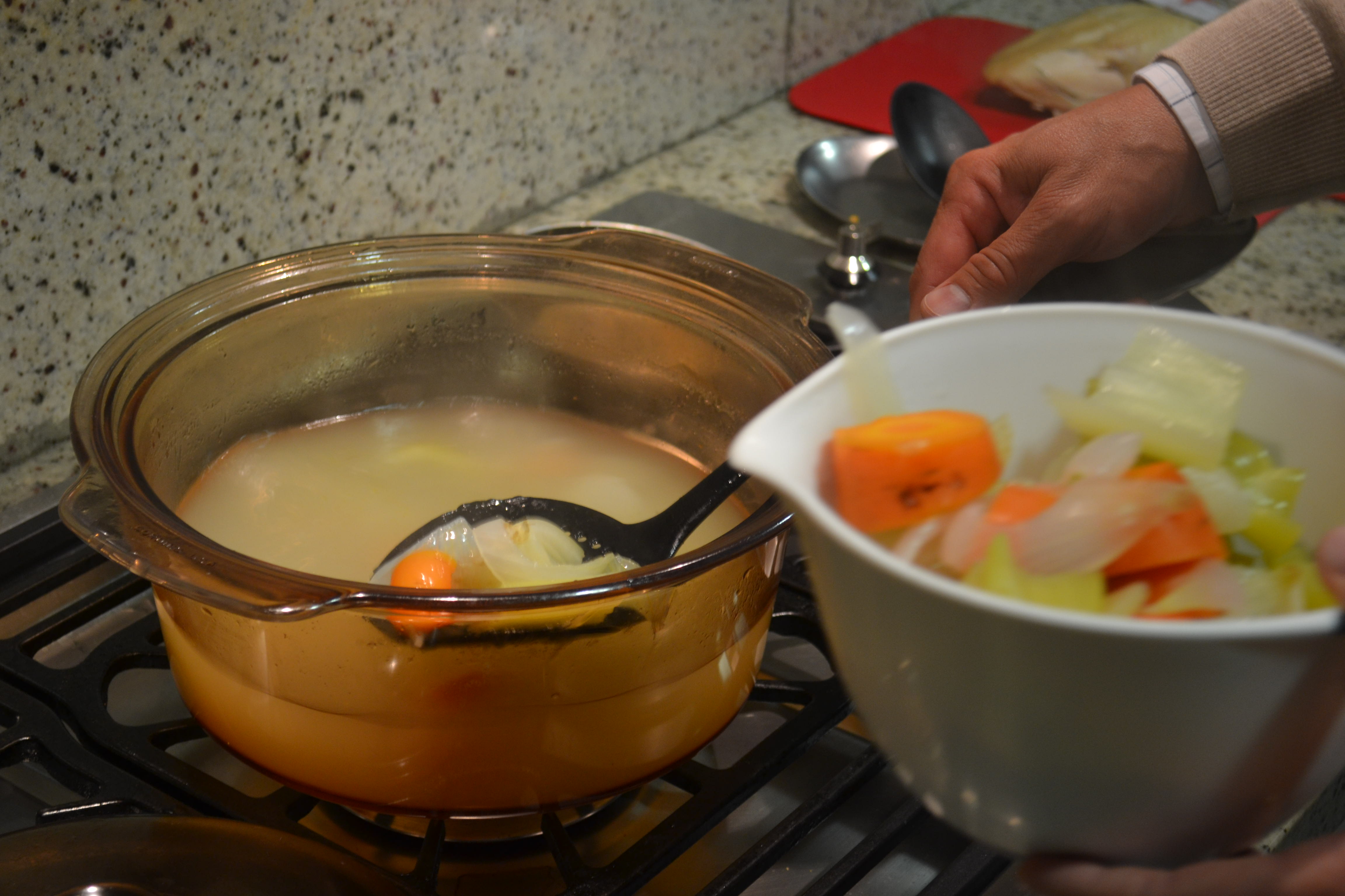 5. Se agregan las verduras y el bouquet, con poca sal, y más agua para que todo quede cubierto.