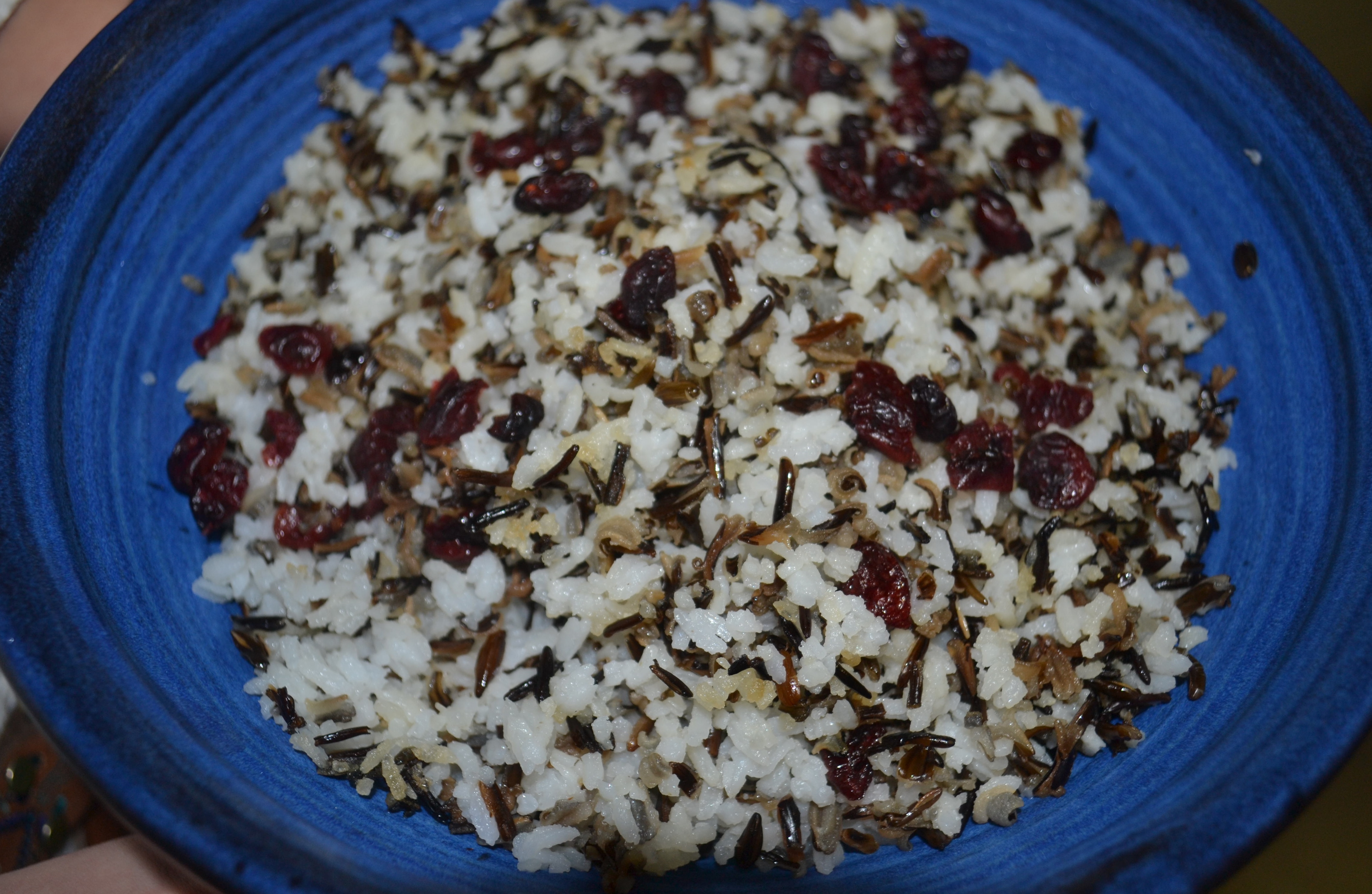 - Revuelva los dos arroces: arroz blanco y arroz salvaje buscando una mezcla homogénea y al final añada los cranberries, mezcle nuevamente y sirva caliente