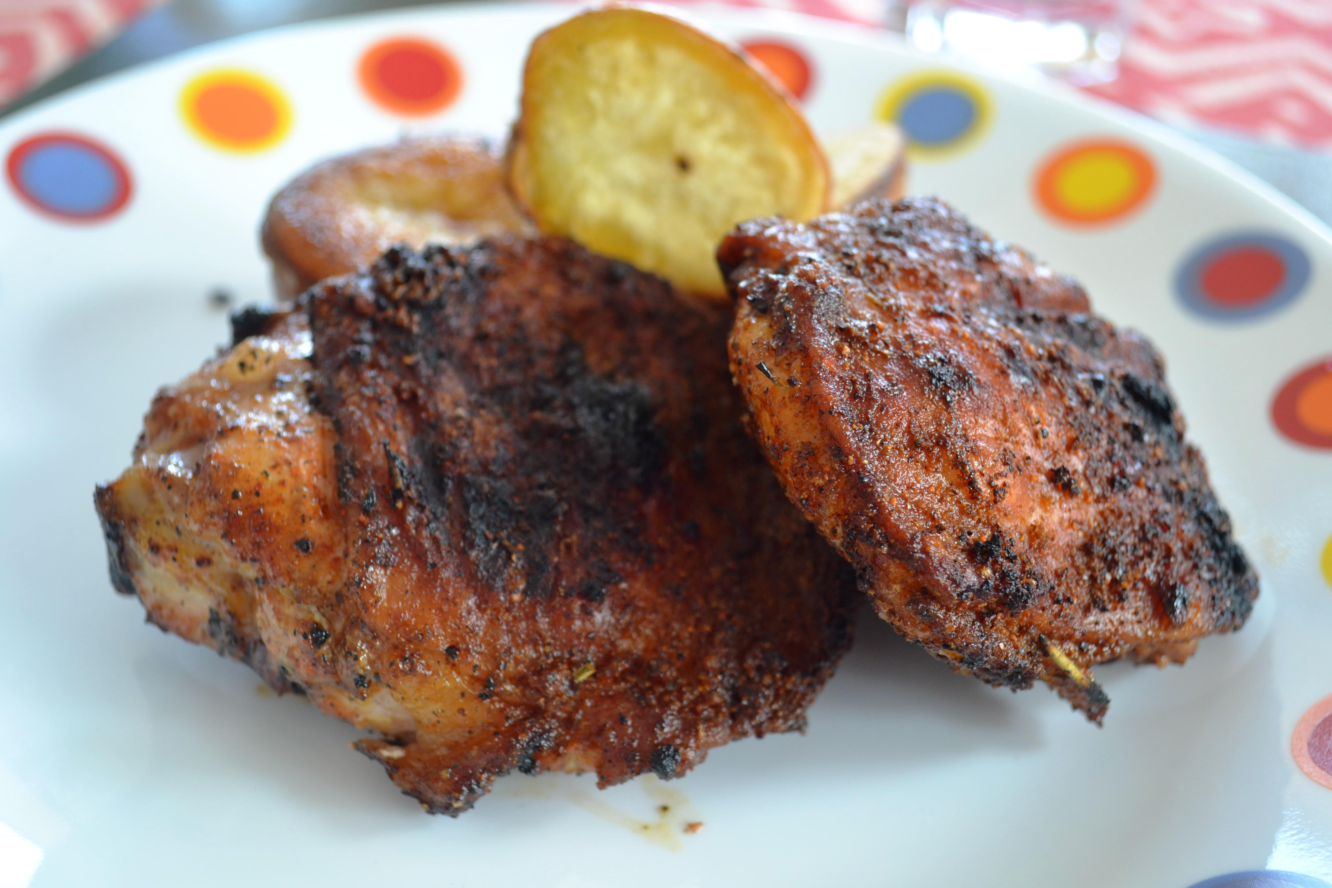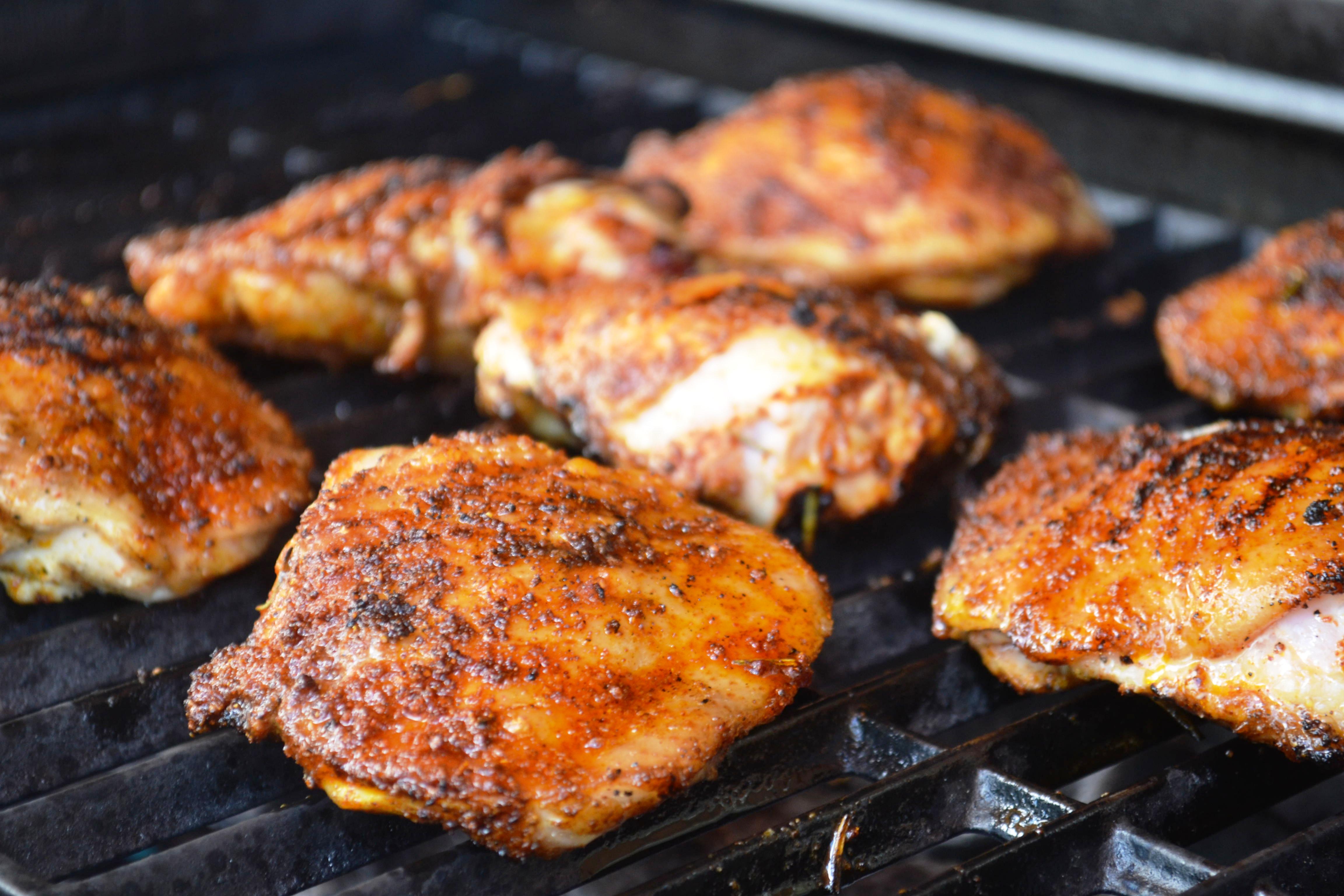 Con este plato conseguimos combinar dos elementos que nos gustan mucho: pollo y parrilla. Para conseguir el punto del pollo (bien cocido y jugoso) es necesario un termometro de carnes y cocinar hasta que la temperatura de la carne esté entre 160F y 170F. Si mezcla piezas de carne blanca y oscura debe monitorearlas por separado, ya que las piezas de carne blanca se cocinan mas rápido que las oscuras. Si tiene la posibilidad de conseguir pollo orgánico, conseguirá un plato maravilloso y sin químicos.