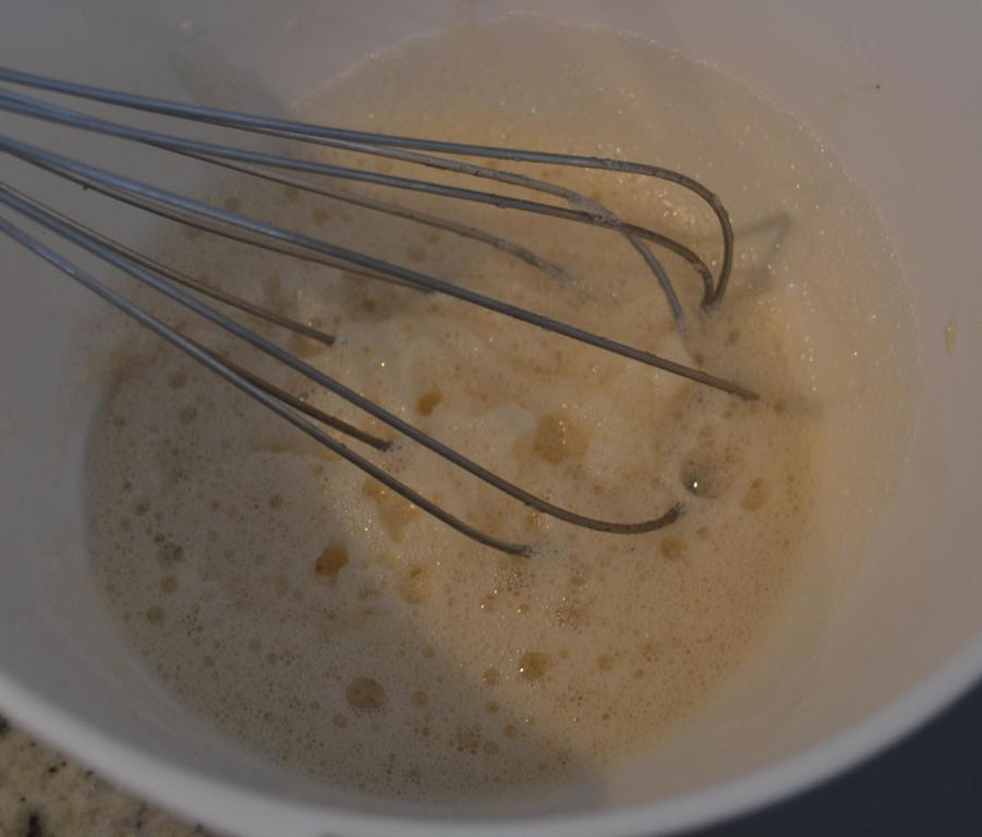 - Batir las claras de huevo y la vainilla hasta que estén bien espumosas pero no duras.