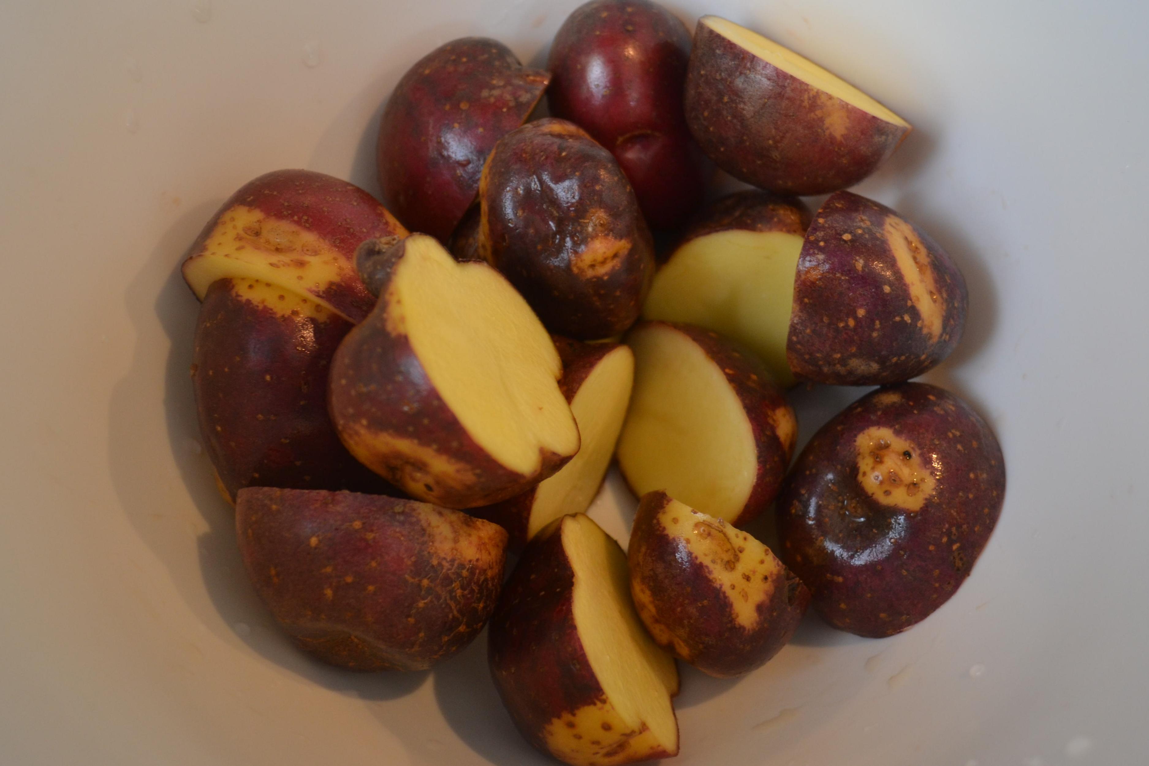 - Es clave para la cocción que las papas sean aproximadamente del mismo tamaño. Si se usan papas sabaneras se pueden cortar en mitades o cuartos, intentando que queden lo más parecidas posible en cuanto a tamaño.