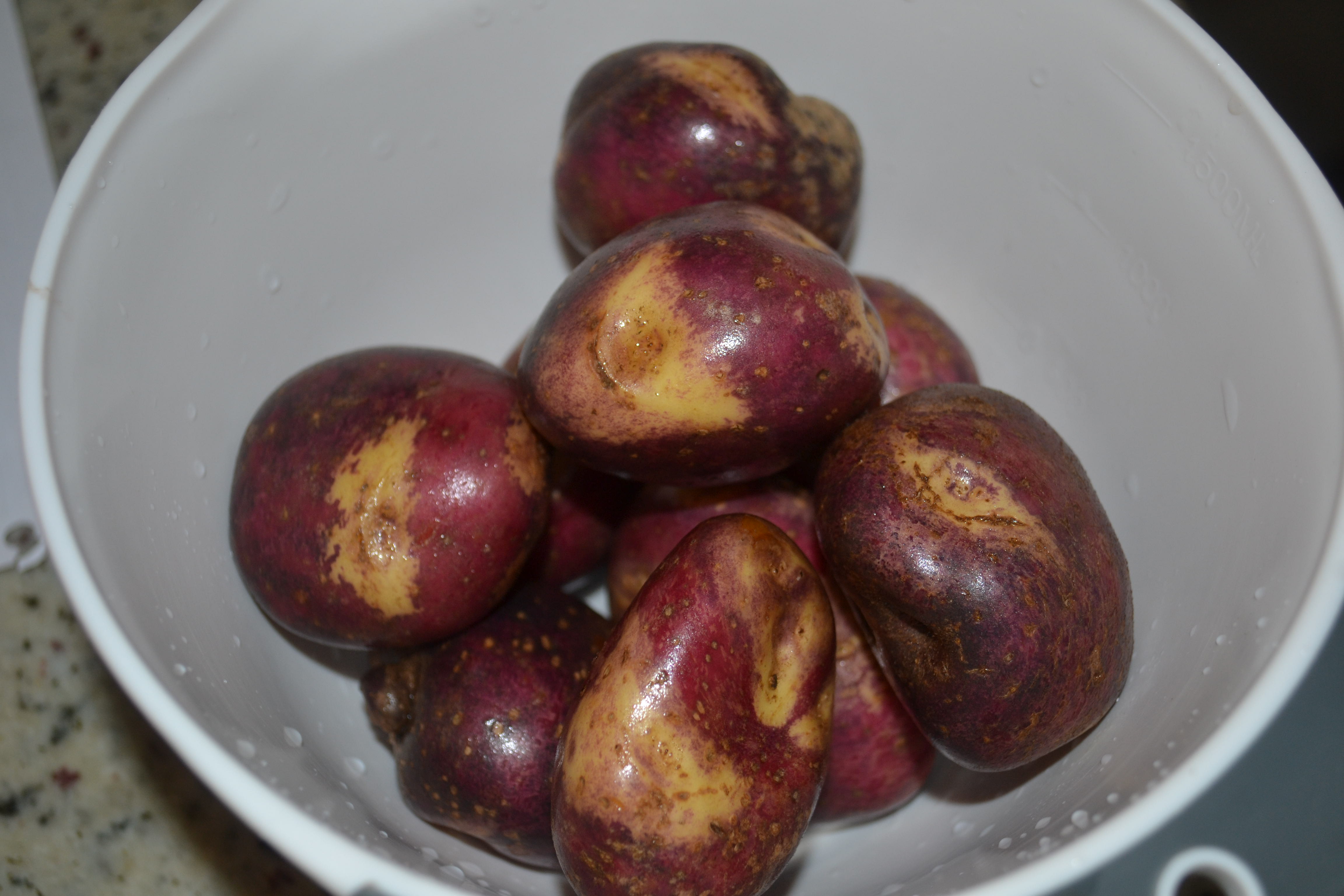 - Lave las papas y cocínelas sin pelar hasta que esten blandas. Este paso lo aceleramos haciendo las papas en el microondas, con la potencia en alto, ponga a cocinar 1 minuto por papa.