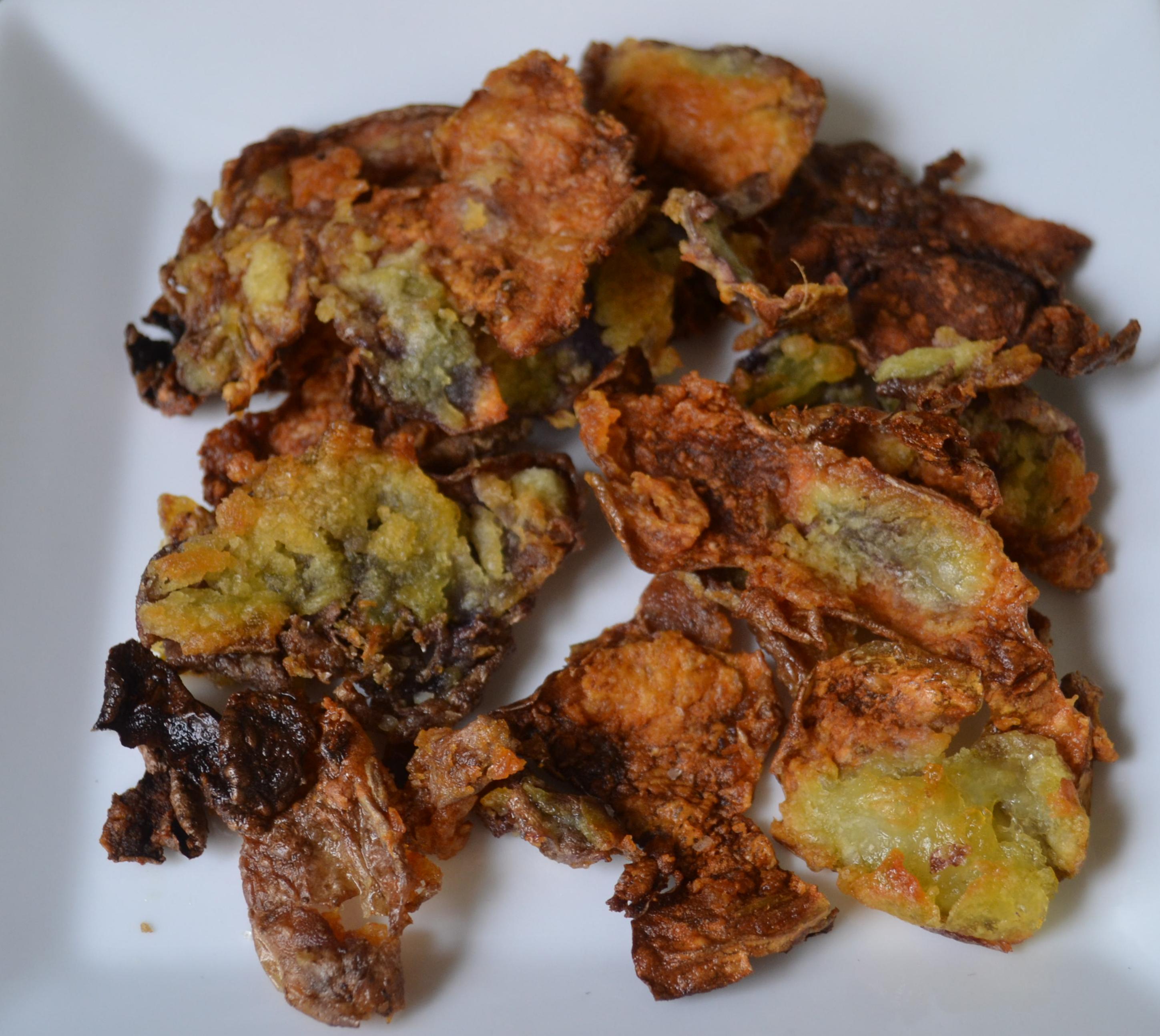 Para las cáscaras, rocíe un poco de aceite de oliva y sal en las cáscaras y ponga a dorarlas en el horno (broil) dándoles vuelta para que esten crocantes por los dos lados.