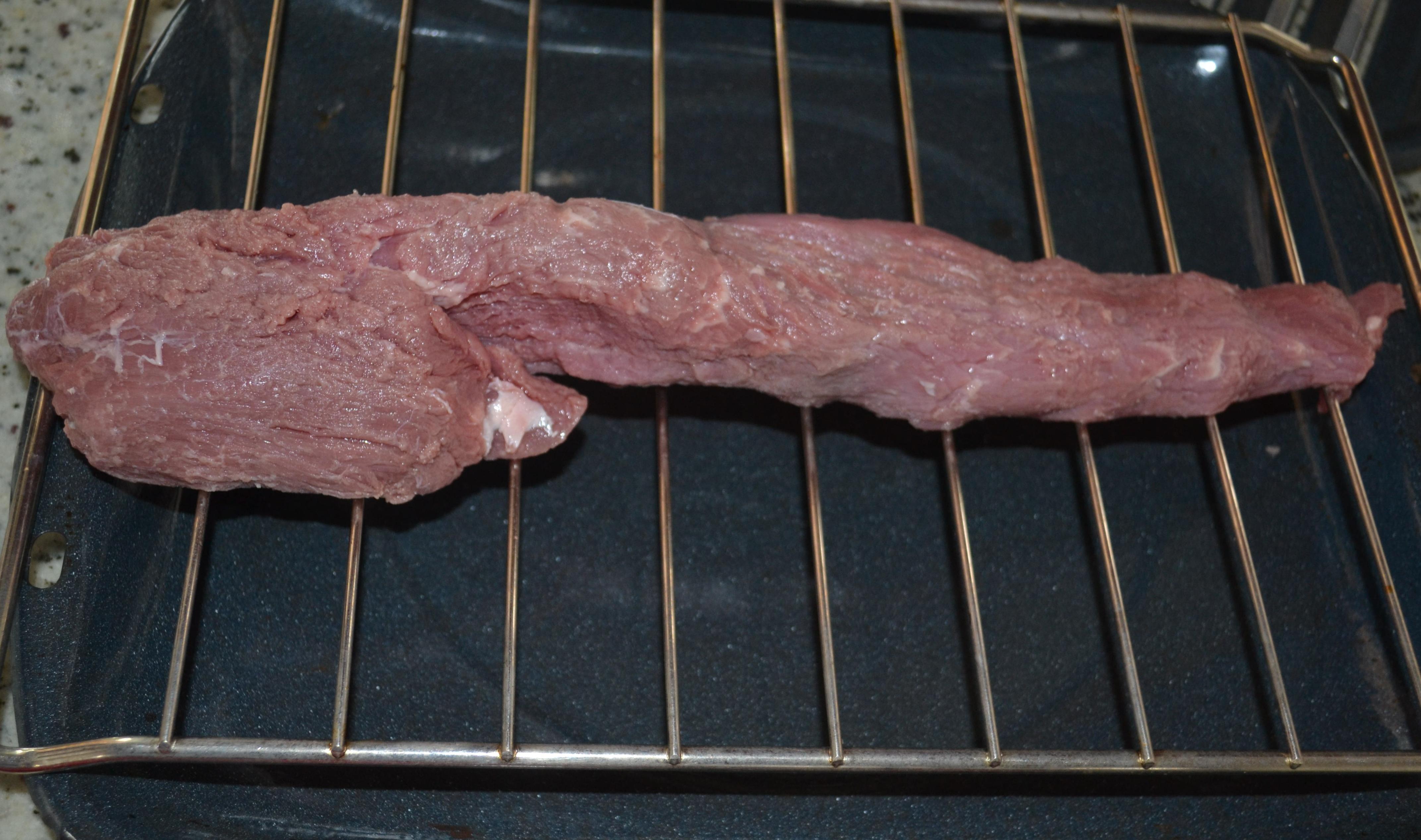 - En un sartén grande caliente aceite de oliva (una película de aceite que cubra el fondo) y selle el lomo por todos sus lados. Retire del sartén y coloque en una parrilla de hornear.