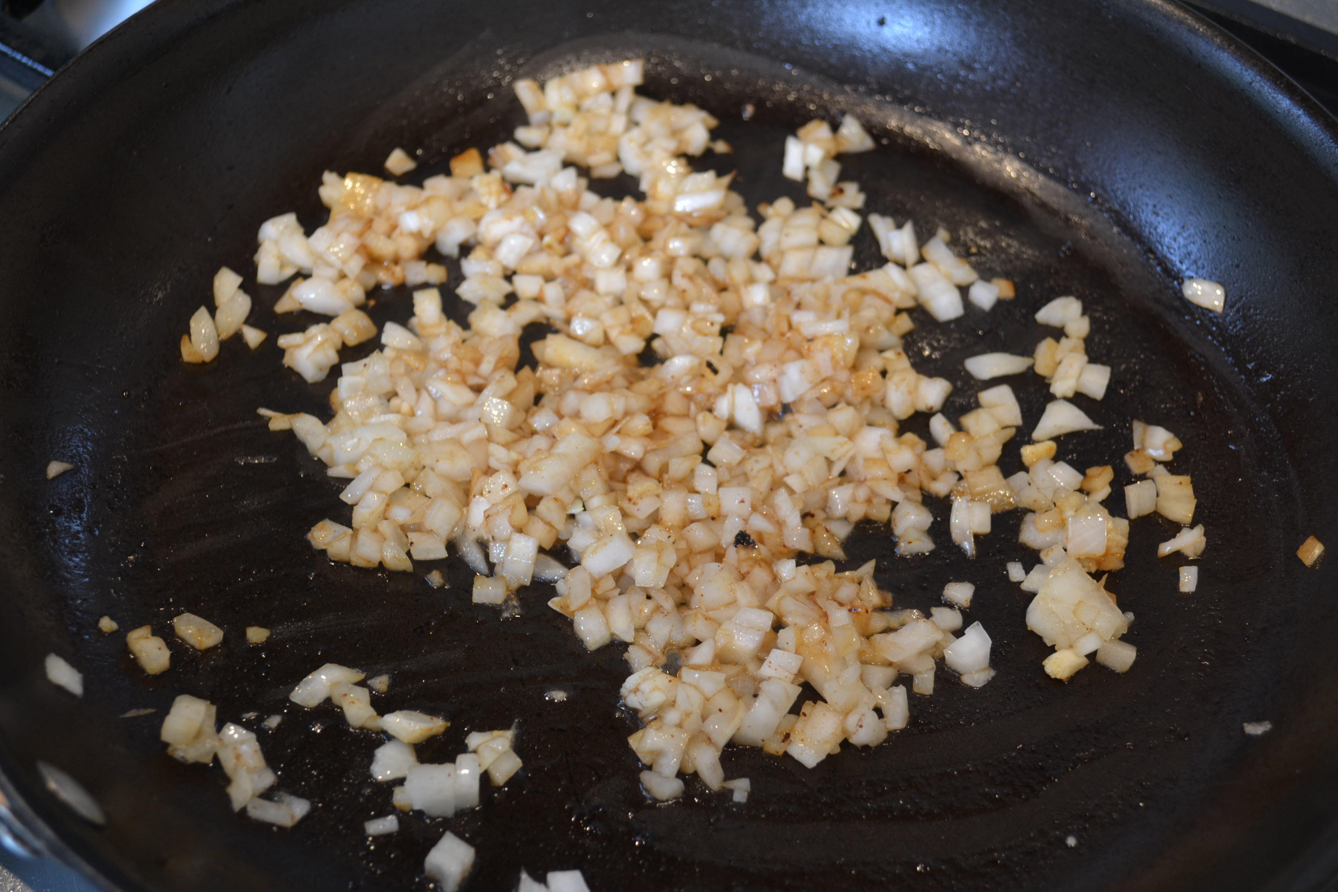 - En el mismo sartén que selló la carne, agregue una cucharada de aceite de oliva, la cebolla y el ajo y con una cuchara de madera revuelva la cebolla y consiga que los restos del sellado de la carne queden revueltos, saltee hasta que la cebolla esté transparente.