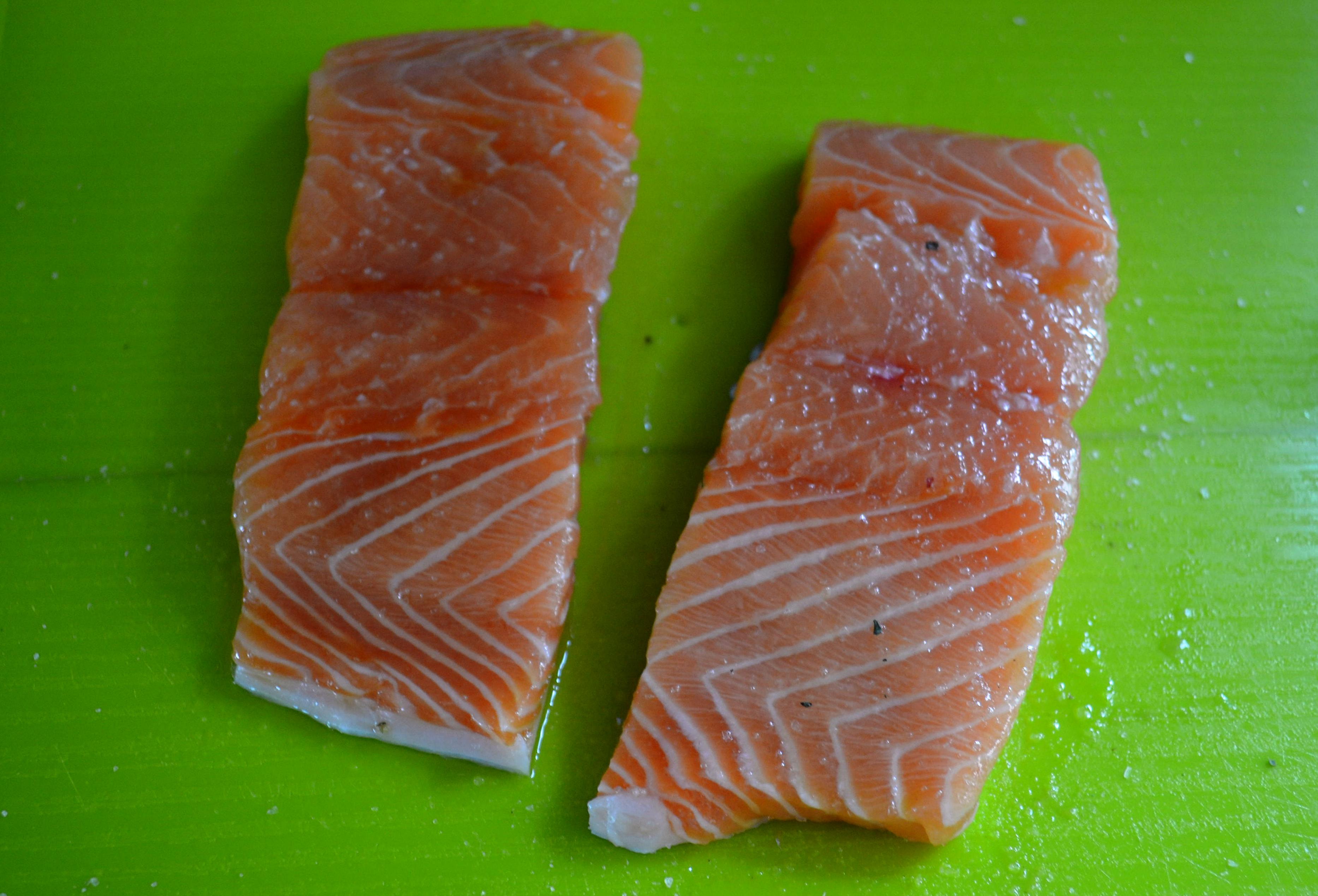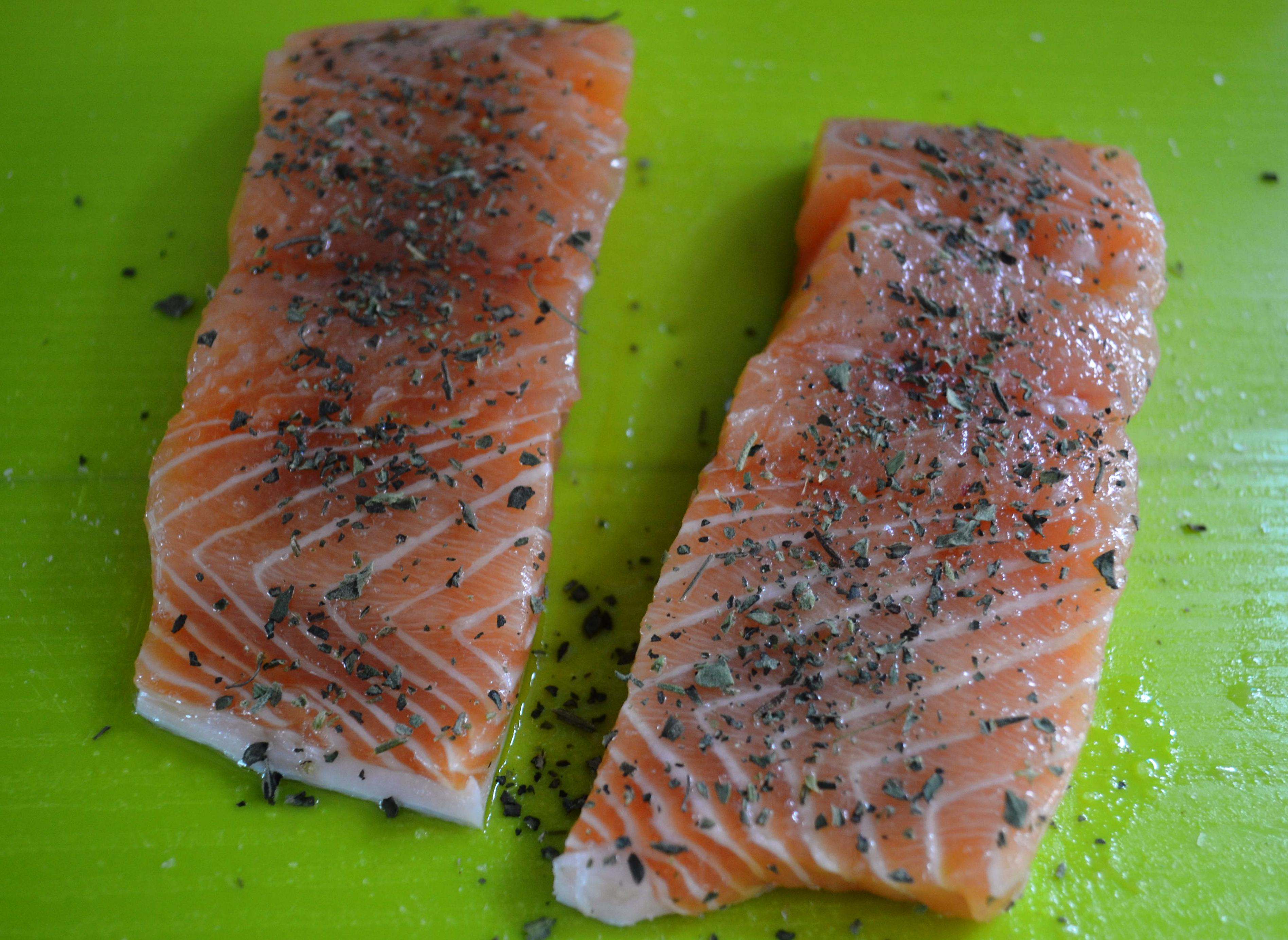 1. Con un pincel esparza el aceite de oliva en el salmón