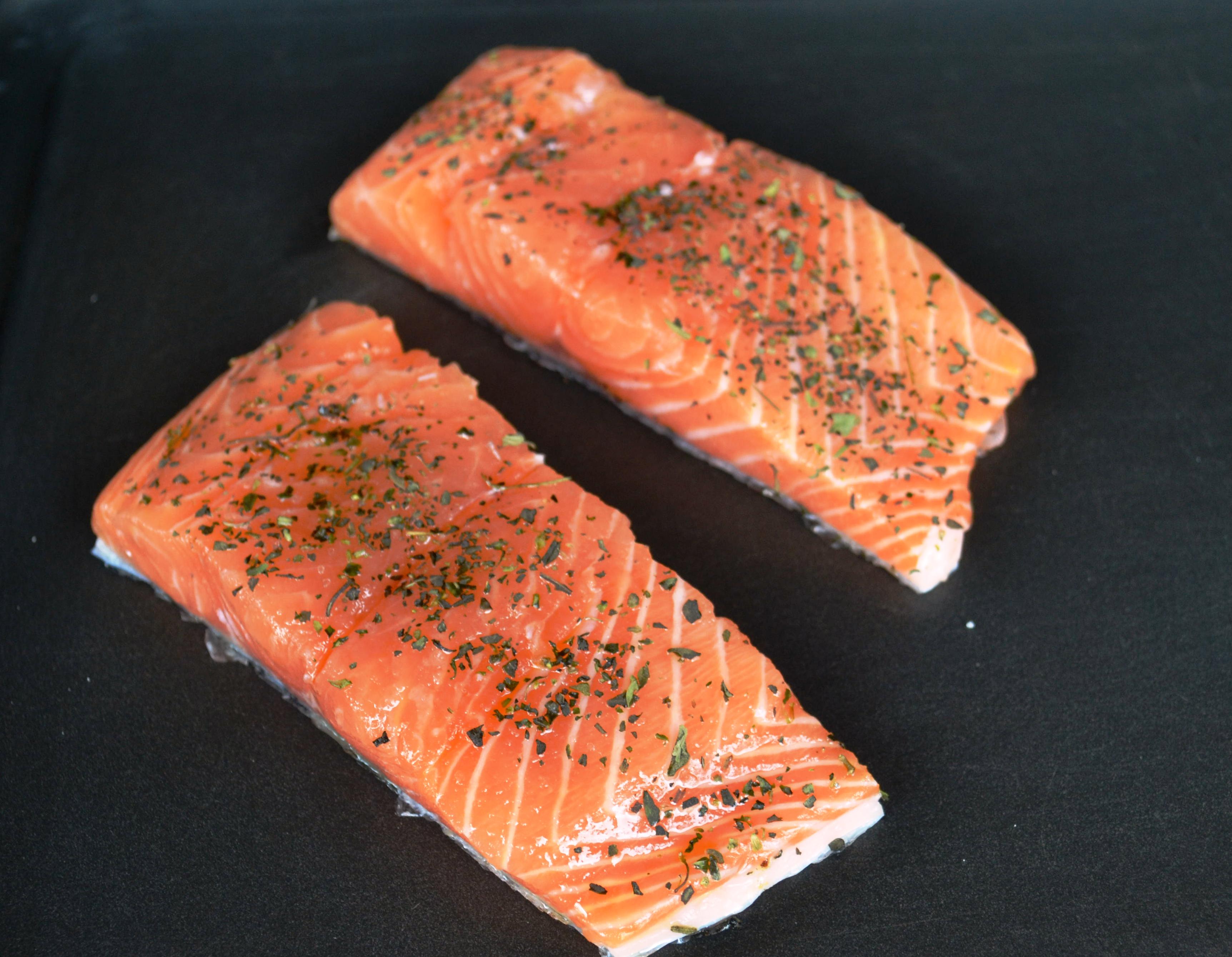• 1 filete de salmon fresco de 200 gm por porción, debe tener la piel.