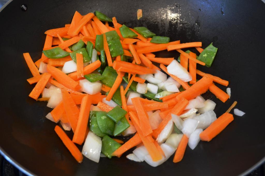 El cocinar en el wok es muy rápido por lo que es necesario tener todos los ingredientes listos,