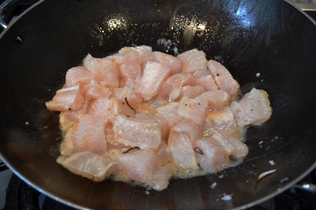 - 2 filetes de Basa cortados en cuadros (del tamaño de un bocado)