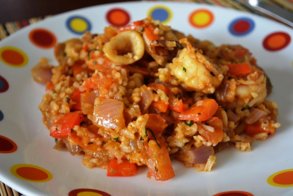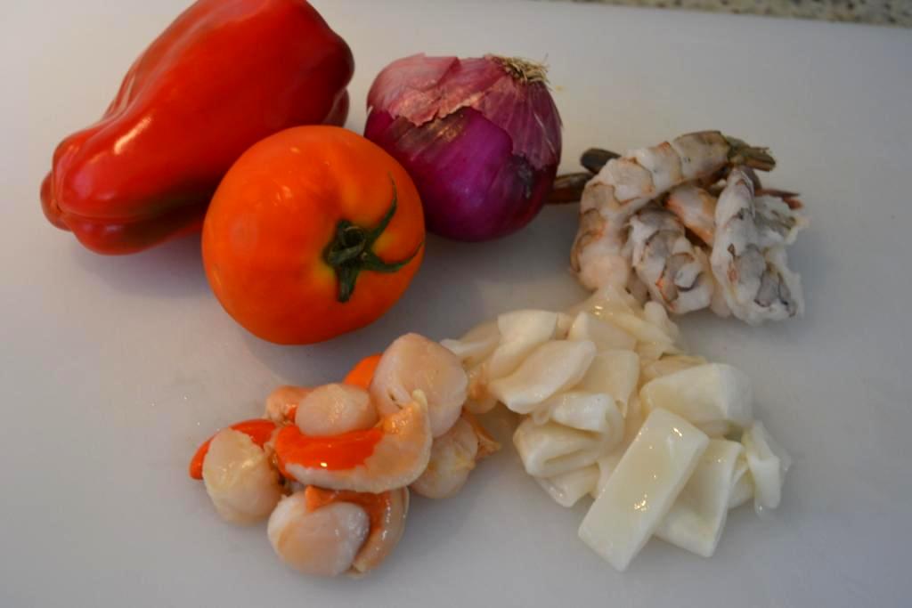 - 2 tazas de mariscos variados (langostinos, vieiras, calamares)