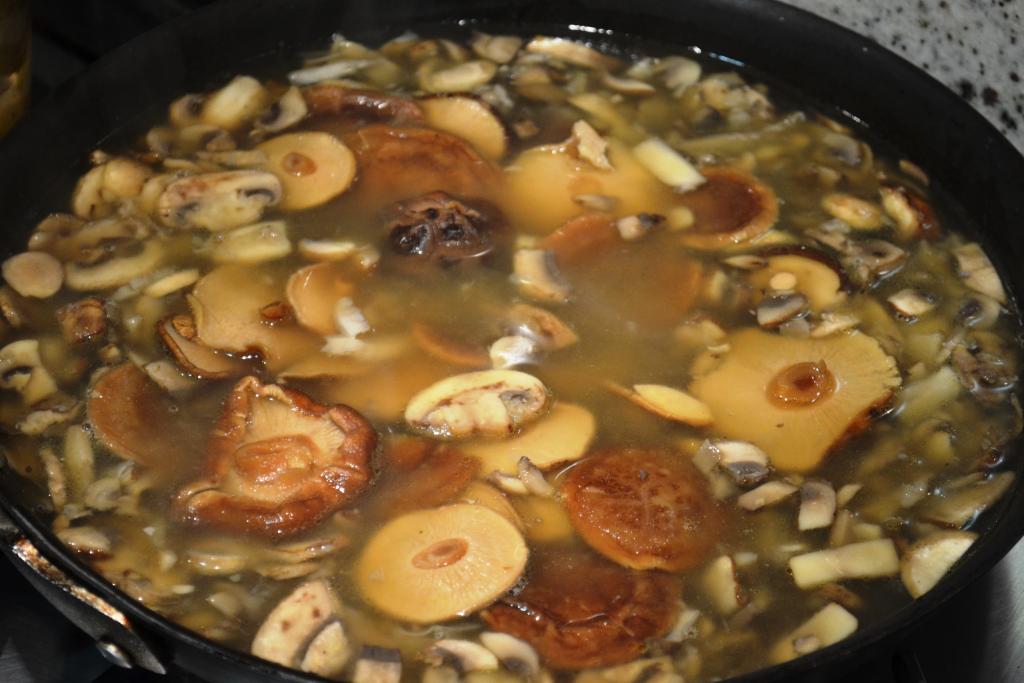 - Cocine hasta que los hongos esten totalmente blandos (15 minutos) y retire del fuego.