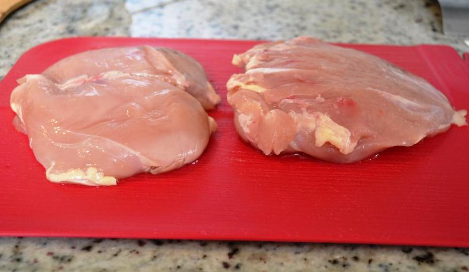 - Corte la pechuga en pequeños filetes, sazone con las hierbas, sal y pimienta y deje reposar por 10 minutos.