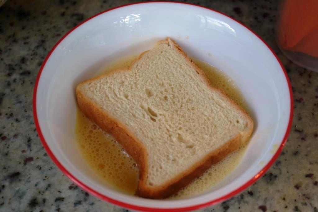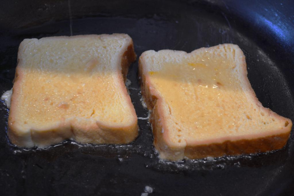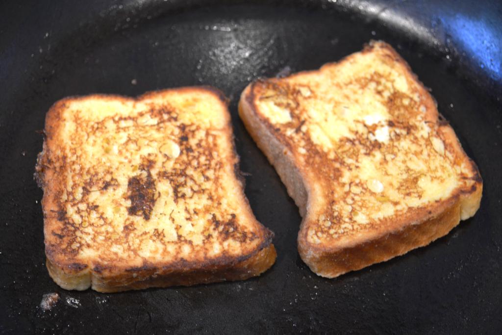 - Caliente mantequilla en un sarten a fuego medio y coloque las tajadas de pan.