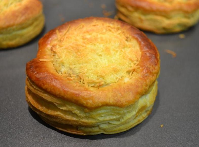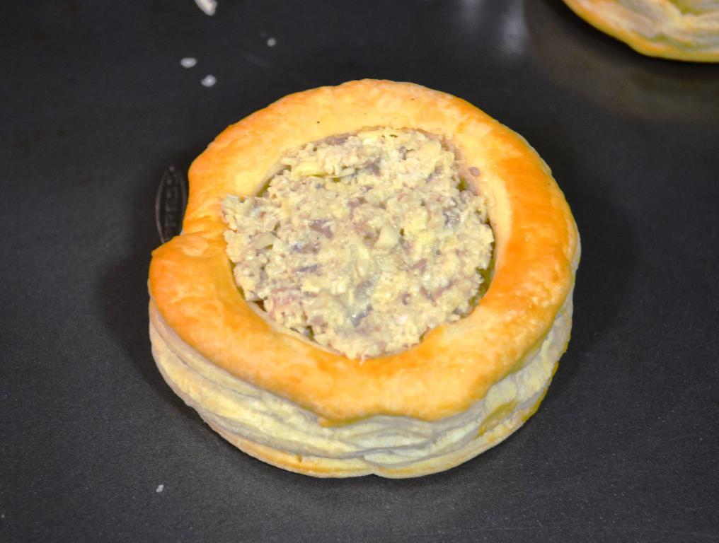 El volován (del francés Vol au Vent) es una canastilla de hojaldre que se rellena tradicionalmente de preparaciones saladas y eventualmente dulces. El hacer la canastilla no es complejo, sin embargo se consiguen listas en el supermercado y así se simplifica enormemente la preparación como un bocadillo rápido para la noche o, usando canastillas mas pequeñas, como pasabocas. Esta es una preparación que le gusta mucho a nuestros hijos (a veces parecería que solo comen pollo y champiñones en todas sus formas) y siempre que los hacemos son un éxito.