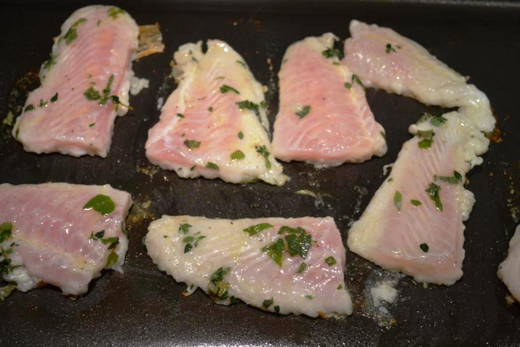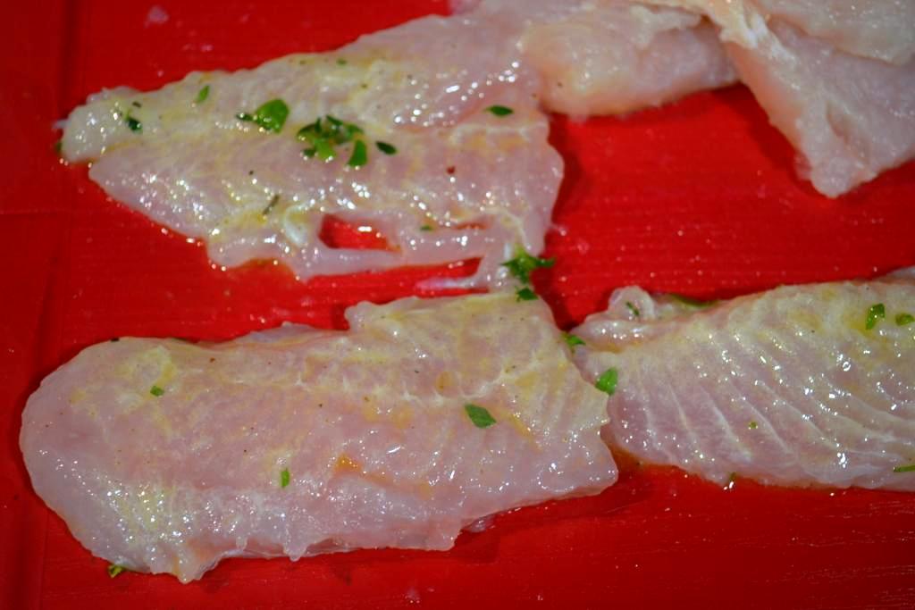 - Marine por 10 minutos el pescado, al retirar el pescado no deseche la marinada sobrante, se va a autilizar mas tarde