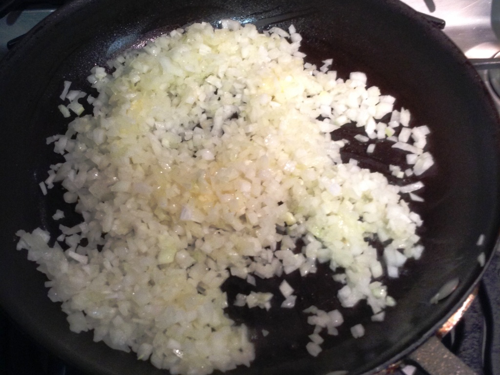 - Pique finamente la cebolla y saltee en aceite de oliva hasta que esté transparente