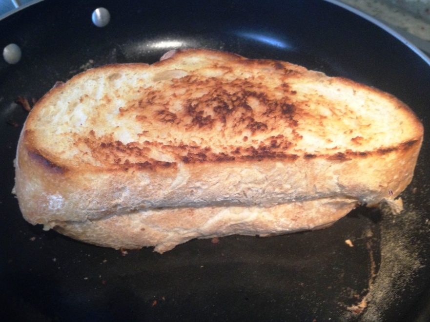 - Cuando el pan esté dorado, arme el sandwich y mantenga en la sartén por 3 minutos más.