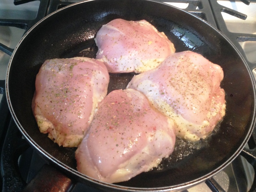 - Salpimiente los perniles y en un sartén con una cucharadita de aceite de oliva dore los perniles durante 3 minutos por cada lado. Reserve la sartén sin limpiarla.
