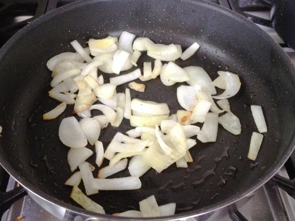 - Caliente en una sarten el aceite de oliva y agregue la cebolla con sal y pimienta hasta que esté transparente. Retire y reserve