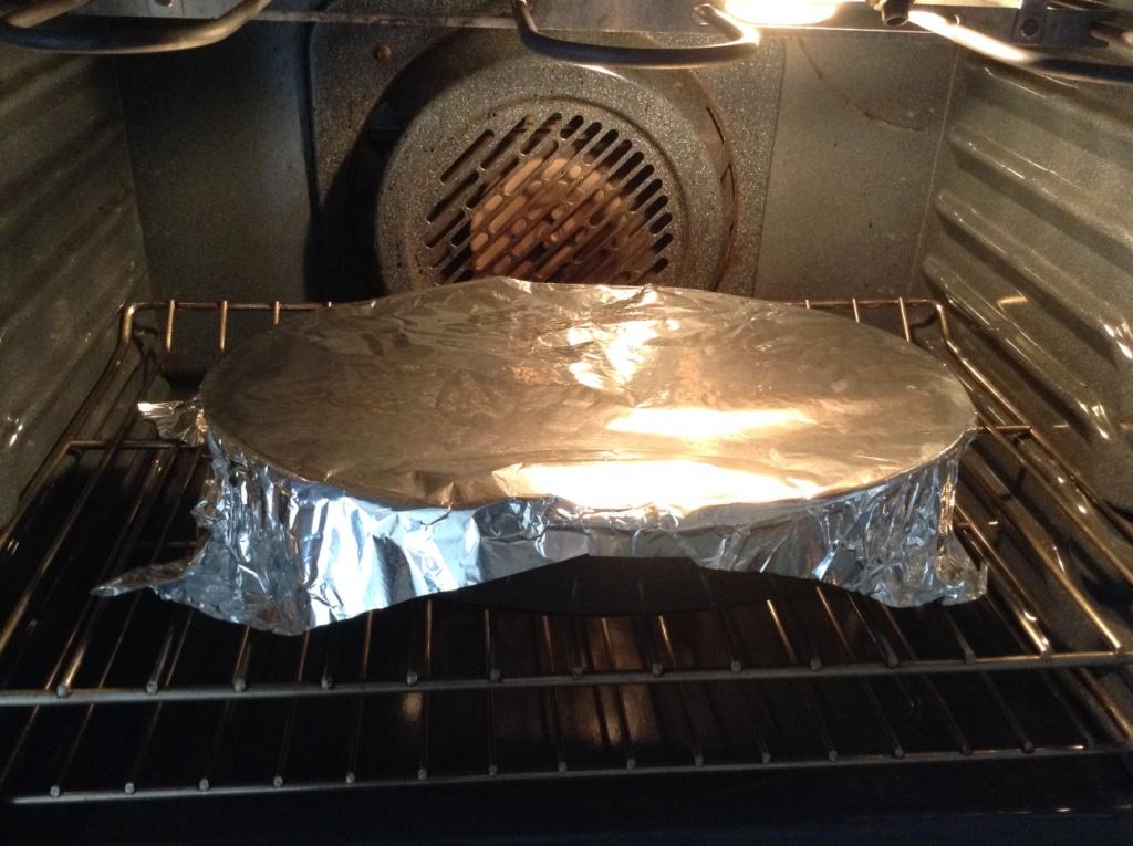 - Tape la refractaria con papel de aluminio y hornee por 15 minutos a 400F