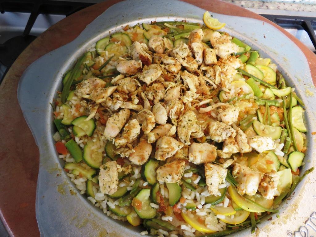 - Retire la tapa, deje secar por 2-3 minutos adicionales y agregue el pollo reservado, revuelva y sirva caliente.