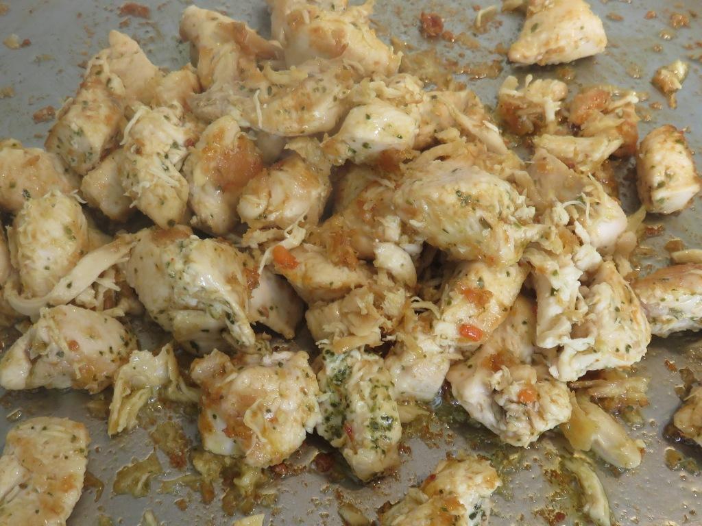 - Corte la pechuga en cuadros pequeños, sazone con sal y pimienta.