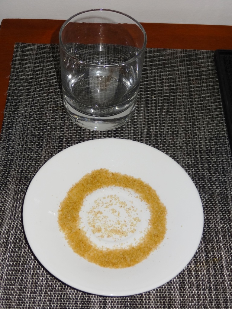 - En un plato pequeño disponga un poco de azúcar en forma de una circunferencia de diámetro similar al del vaso.