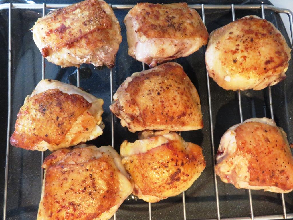 - Lave con agua fría los perniles de pollo y séquelos con una toalla de papel.