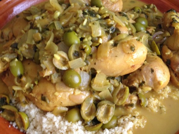 Esta receta es compartida por mi amiga Diana que comenta: "Este plato es un clásico en la cocina marroquí y lo aprendí a preparar precisamente en Marrakesh. La mejor forma de prepararlo es usando un tajine cerámico como el que aparece en las fotos, pero no es fácil tenerlo en casa, así que yo lo preparo en un sartén hondo. En marruecos se cocina y se lleva a la mesa el tajine cerámico, así que yo lo sirvo completo en un tajine y lo llevo así al centro de la mesa"