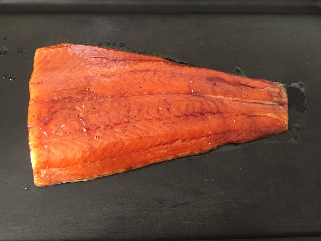 - Sazonar el filete de salmon con la sal, ajo en polvo y pimienta de limón
