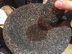 - Triture la pimienta con la sal en un mortero hasta que quede medianamente fina.