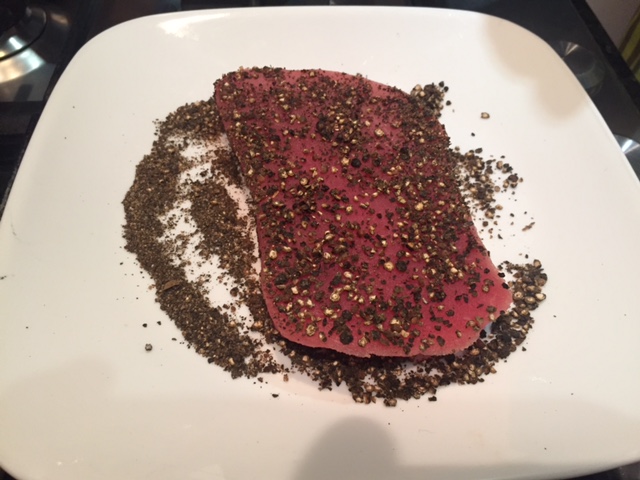 - Cubra completamente con la pimienta el lomo utilizando las manos y presionando para que quede bien adherido.
