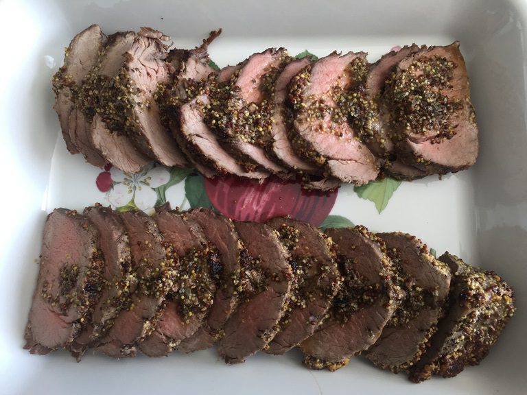 - Una vez esté fría la carne cortar en medallones de 1 cm y servirla con la salsa caliente.